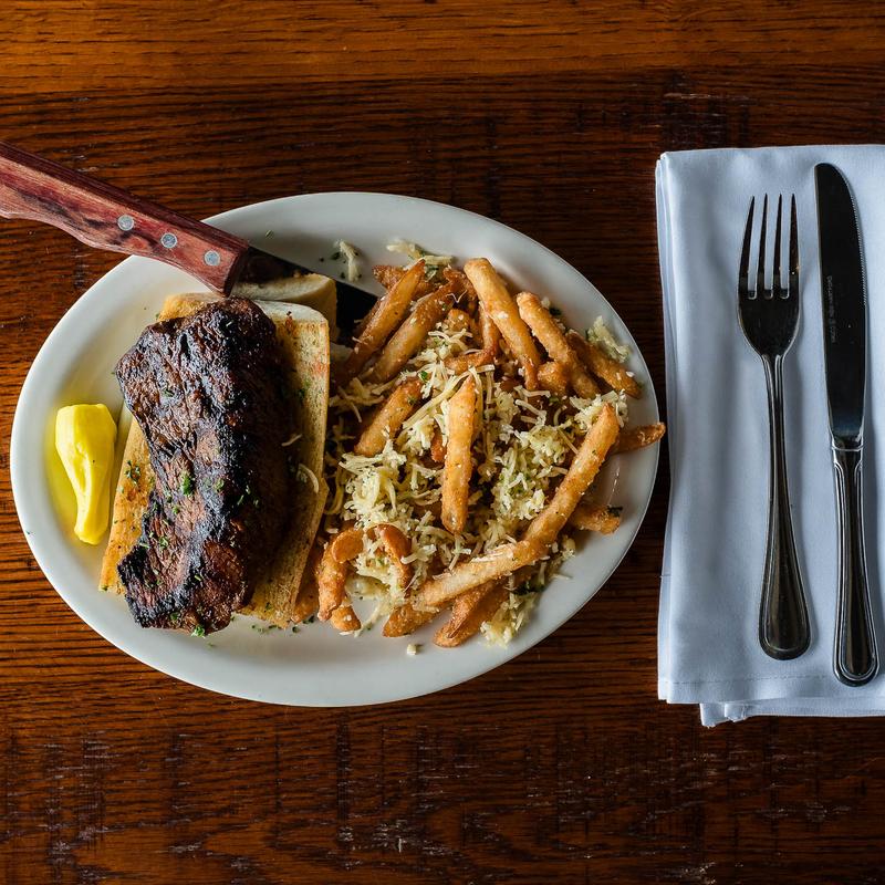 Includes fresh-baked bread & butter and your choice of 2 sides: Garden Salad | Caesar Salad (add $1.00) | Mashed Potatoes | Baked Potato | Rice Pilaf | Vegetable of the Day | French Fries | Sweet Potato Fries