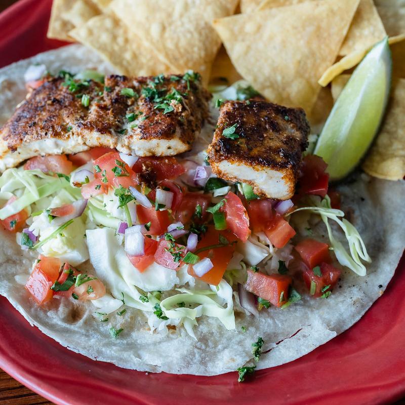 Char-grilled flour tortilla, cabbage, fresh salsa, pepper jack cheese, & lime crema. Served with house-made tortilla chips.